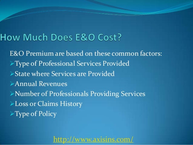 The cost of architect insurance depends on several key business factors and your unique business risks. Average costs for e&o coverage are usually $500 to $1,000 per employee, per year. Errors and omissions insurance (e&o insurance) also referred as professional liability insurance, and professional indemnity insurance is an insurance coverage that provides financial protection to companies, their employees, and professionals from lawsuits, negligence claims, court costs, settlements and or other. Errors and omissions insurance and professional liability insurance are names used to describe the same policy.