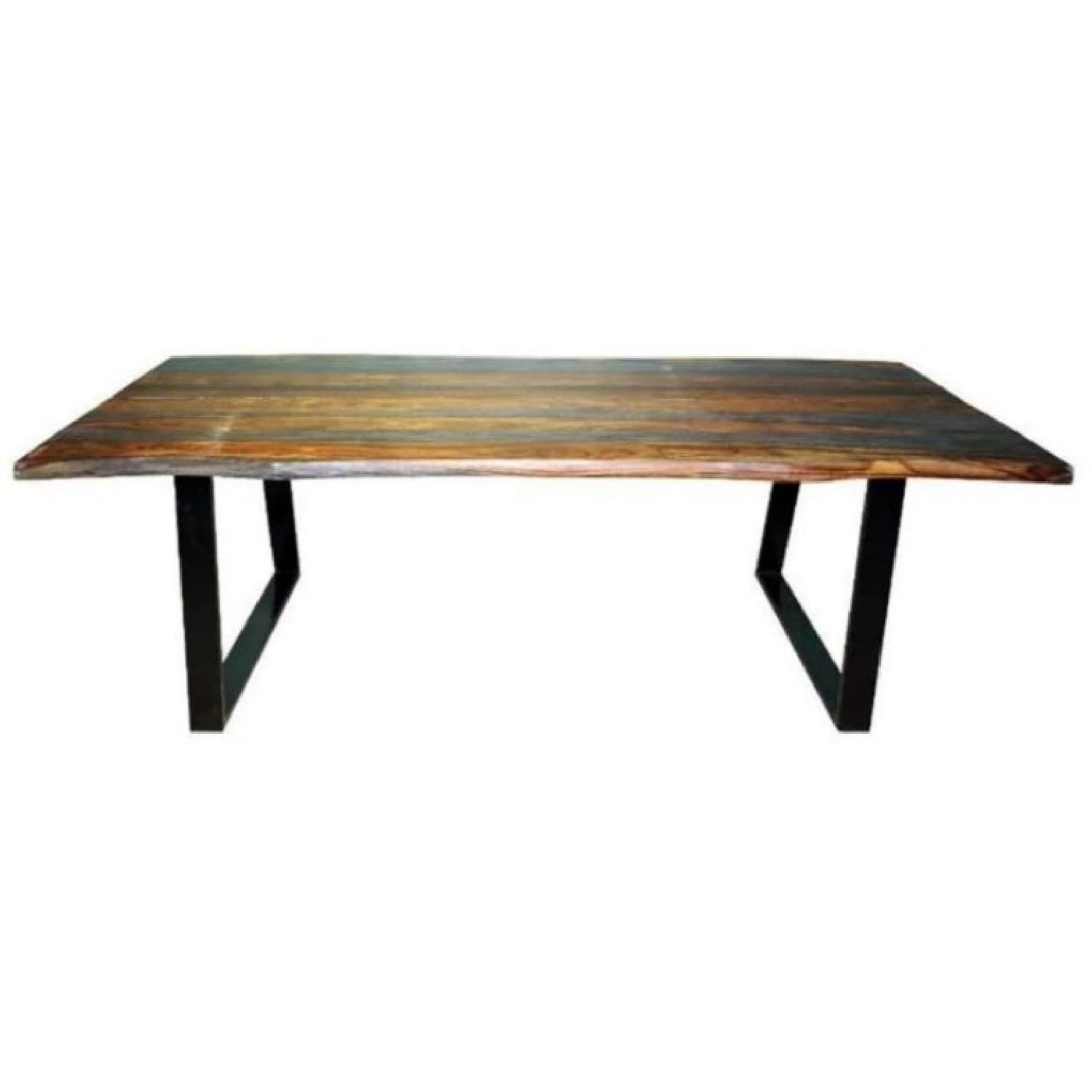 Organic Solid Wood Gray Dining Table with Blackened Metal ... from rotsenfurniture.com Urban industrial solid wood and reclaimed metal base square dining table. Each rectangular dining table is topped with a clear natural finish that protects and enhances the natural the metal base paired with the organic wood table top creates a modern industrial style. Order in wood types like.